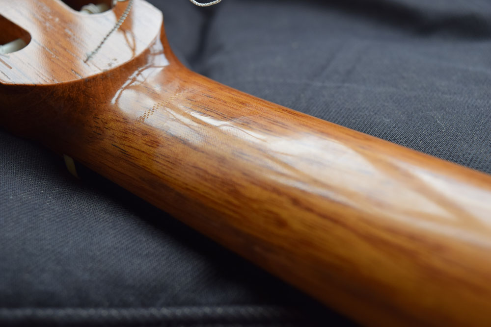 Wrong way up, as the case is a two tone design with neoprene one side, and the other side material (which is a lot rougher) will imprint on the neck, if you have French polishing and a little bit of a warm day.