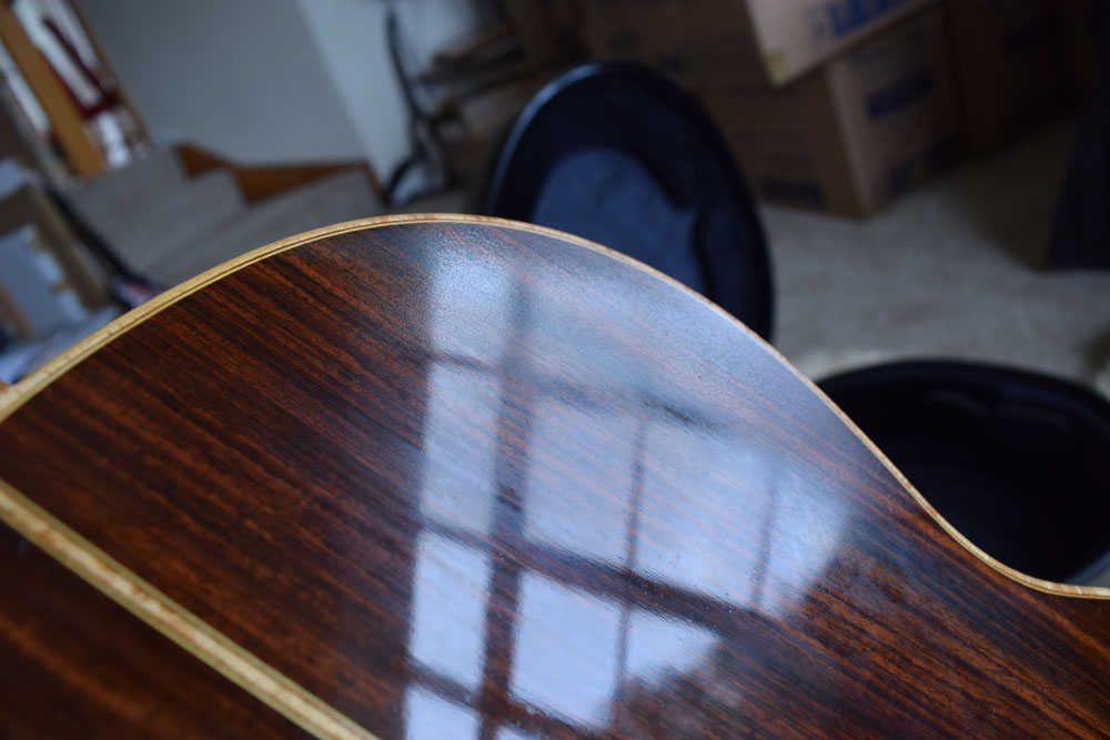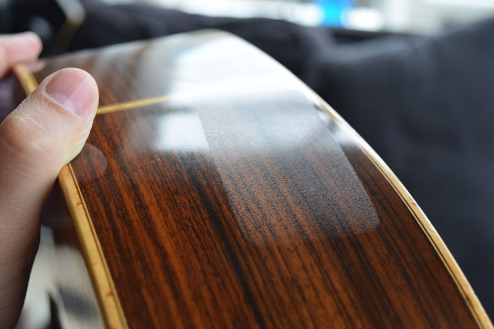 Wrong way up, as the case is a two tone design with neoprene one side, and the other side material (which is a lot rougher) will imprint on the neck, if you have French polishing and a little bit of a warm day.